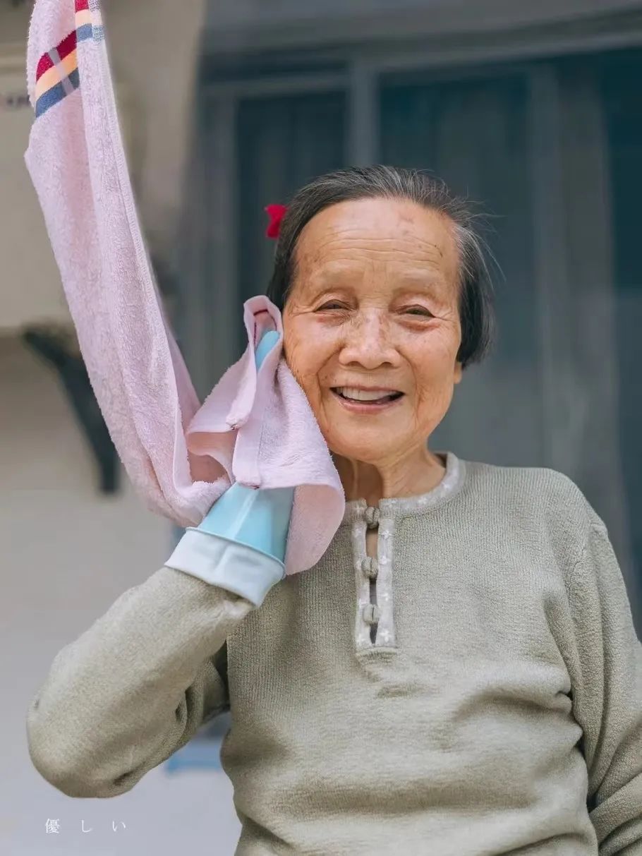 照片发布后,反响热烈。有人说:“外婆笑得好幸福!被暖到了!”有人留言:“你外婆还站得直,我奶奶86岁了,腰站不直了,早年干活太多了……”