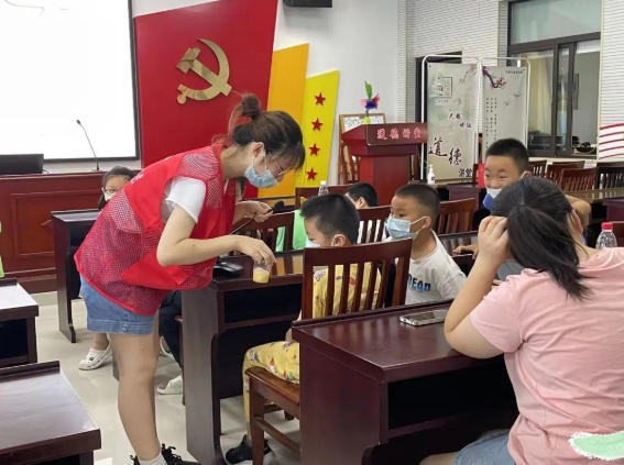 炎炎夏日,在竖新镇团委、社区少工委的关心支持下,7位来自上海师范大学的青年学子充分发挥各自的专业优势,将唐诗宋词诵读、安全教育宣讲、故事欣赏、科学实验、益智游戏、美术绘画等丰富多彩的课程带进了竖新镇“椿园爱心学校”。