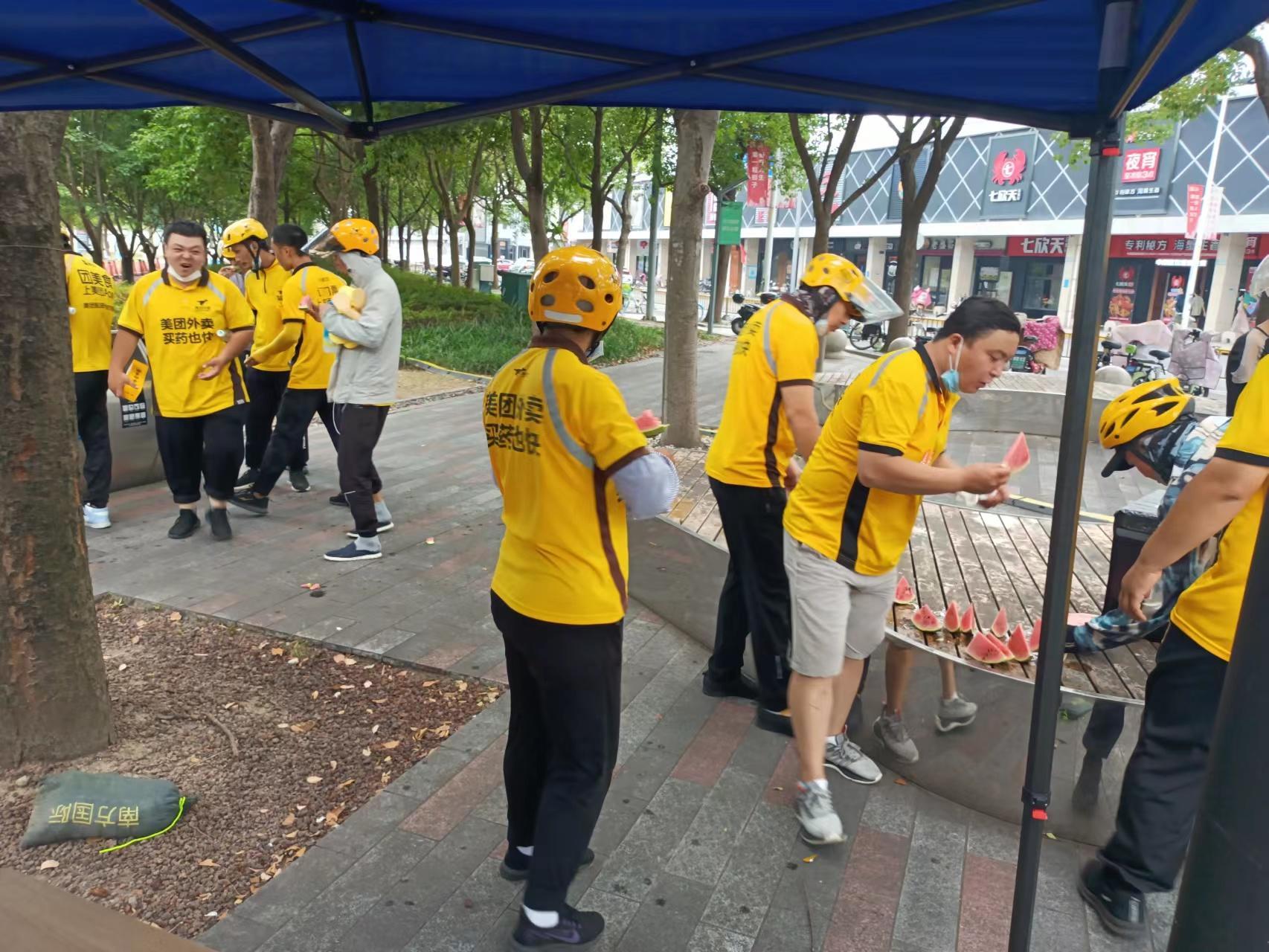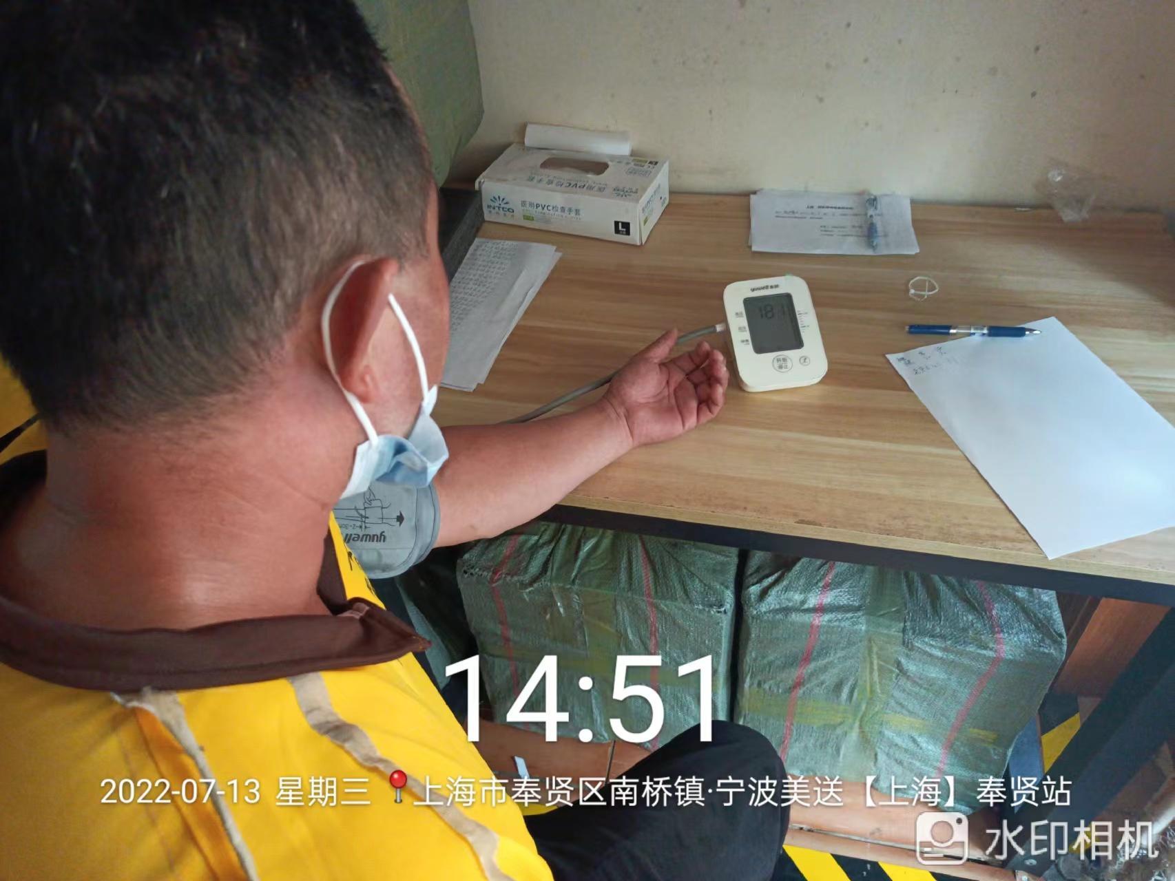 宁波美送(上海)奉贤站站长张海洋告诉记者,高温下的骑手血压容易高,因此,各站点都准备了一些防暑降温的措施,冰袋、冷饮、冷藏盐汽水、冰西瓜等为骑手“降温充电”,每天都有高温提示,工作群中分享中暑预防、急救小知识、电动车充电安全提示;新骑手对于高温环境下工作不适应,下午都有叫到站点降暑等。