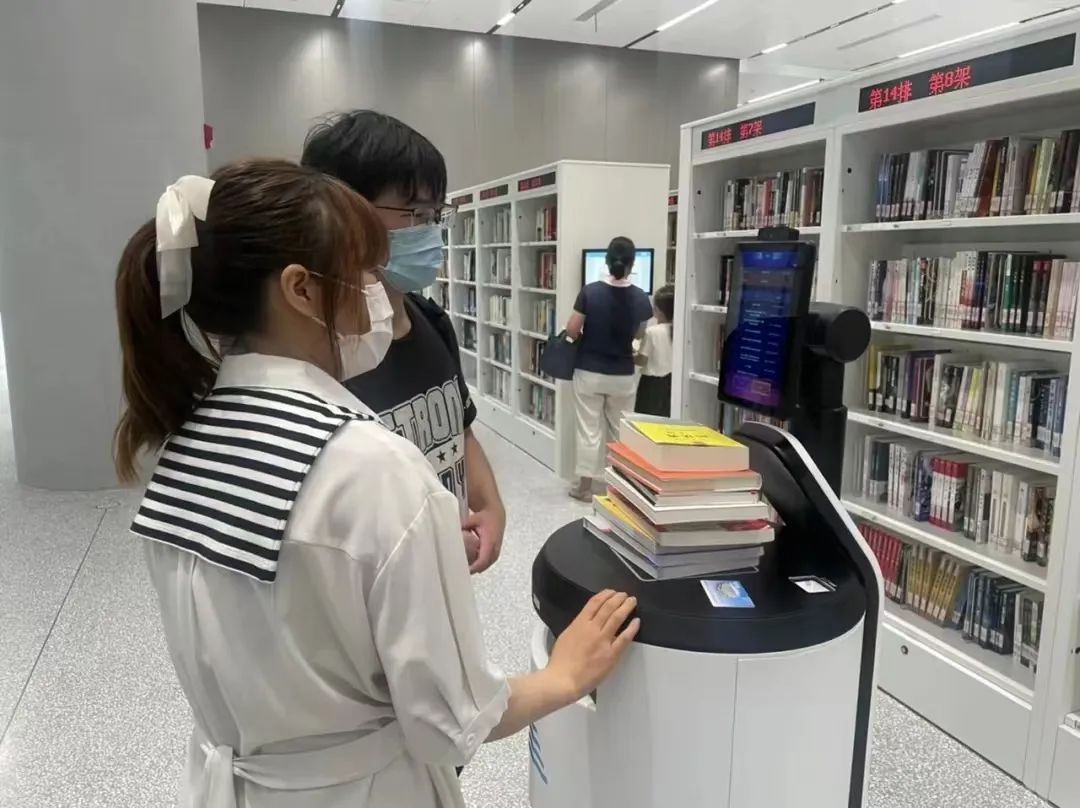 预约座位的同时,也能实现预约图书功能,扫码入座后,后台接收到借阅信息,将由特殊的“馆员”——服务机器人将图书送到相应座位。目前,东馆一楼、三楼各配备了6位机器人“馆员”,为读者提供图书借阅、查询、讲解,室内导航、智能对话、巡逻广播等服务。