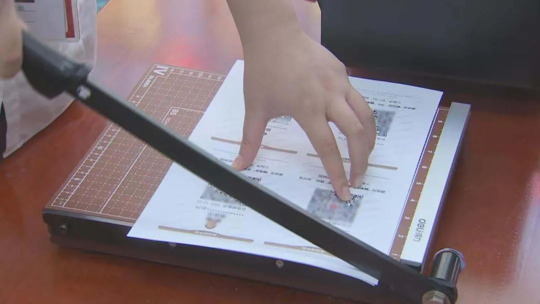 打印好的离线码,中心和居委的工作人员还会贴心地进行裁剪,做成胸卡,送还给市民。