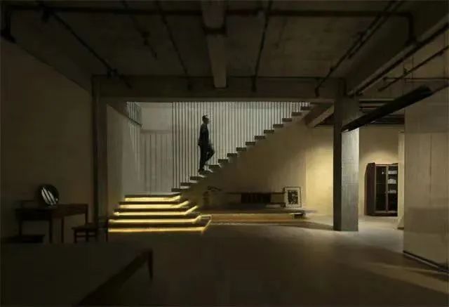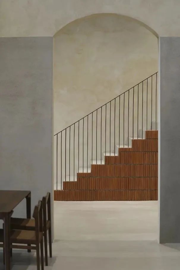 透过拱门隐约瞥见的红砖楼梯、从墙面延伸的悬浮楼梯,位于中成智谷的致家家居里,楼梯变成了一个个艺术装置,带人走向秘境。