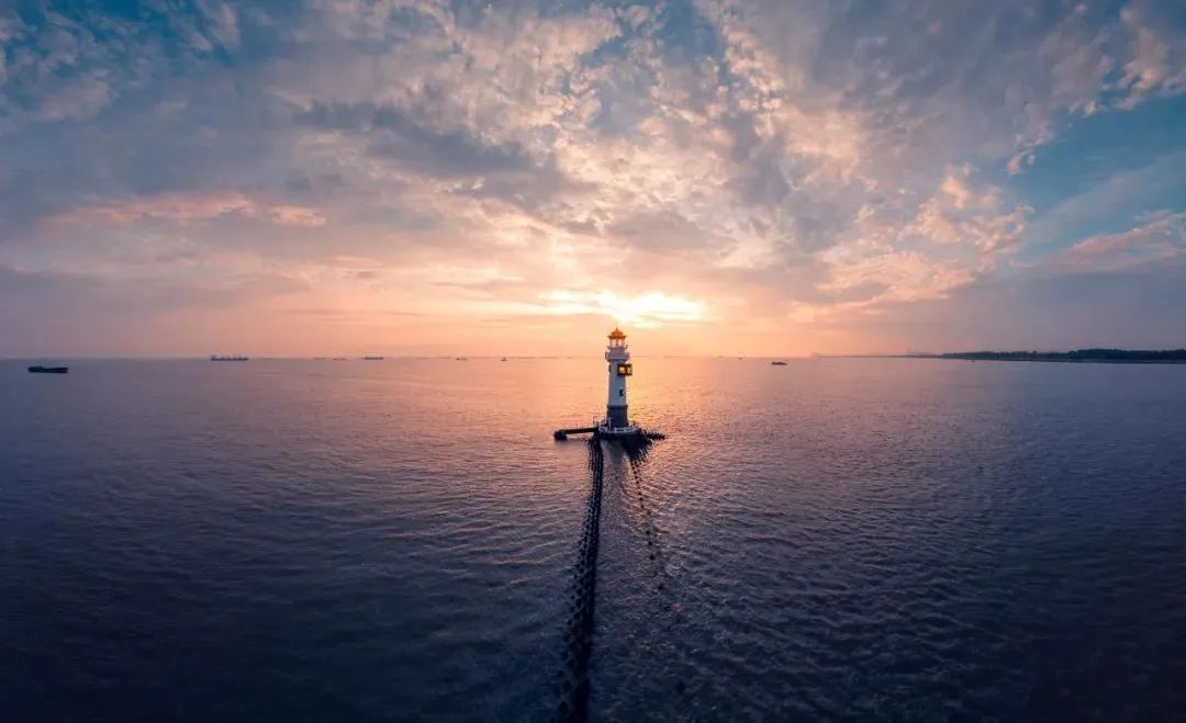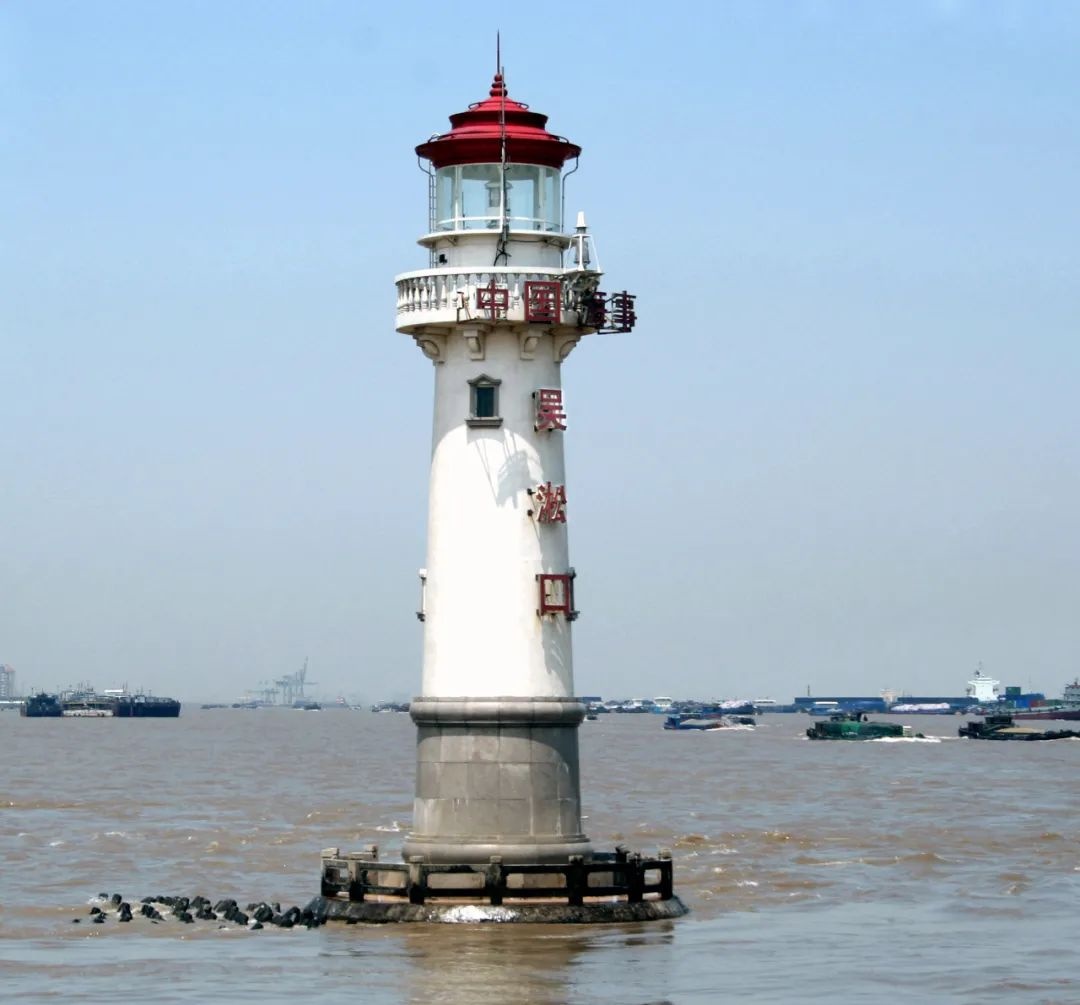 内有旋梯六七十阶的吴淞口灯塔,伫立在长江和黄浦江交汇的吴淞口,为每一艘进出的船舶助航。白色圆柱形塔身、配红色塔顶,在烟波浩瀚间分外明显。