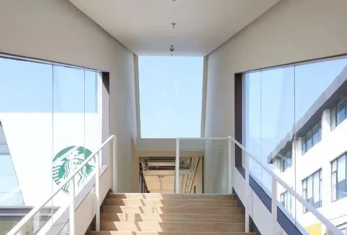 从大陆首家星巴克集装箱概念店里拾级而上,明亮的天窗变成一个画框,把日月星辰都装进了里面,六个集装箱成就了一个超现实的美学空间。