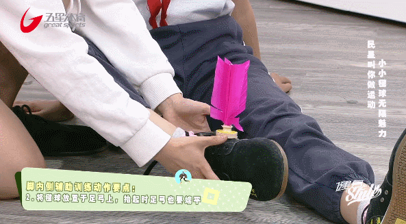 将毽球放置于足弓上,抬起时足弓也要端平。