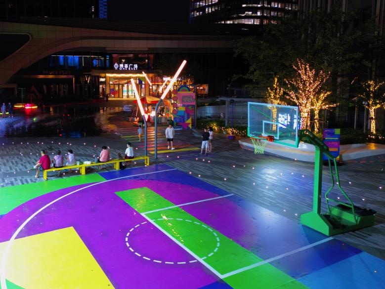落日之后,通过夜光篮球、夜动滑板、啤酒巴士、极光瀑布、霓虹舞厅等系列夜光装置,从场景优化、品牌更新、消费体验等方面不断构建社交新场景,打造年轻潮流圈层兴趣打卡的佳选之地。街头篮球、滑板、滨江夜跑、极限飞盘、瑜伽、板式网球等运动项目,激发夏夜的热情,助推夜经济焕发城市新活力。