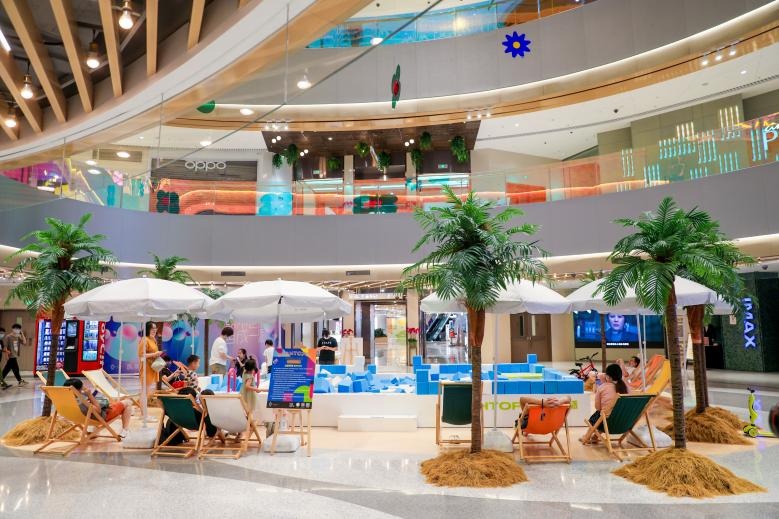 白天,为潮流家庭客群打造的海景度假沙滩及户外卡丁总动员,成为家庭亲友间增进情感的绝佳去处。此外,“蔷薇森林”油画教学等互动体验及漂流瓶交友活动,助力周边年轻白领培养多元的生活方式与爱好,丰富社交生活。