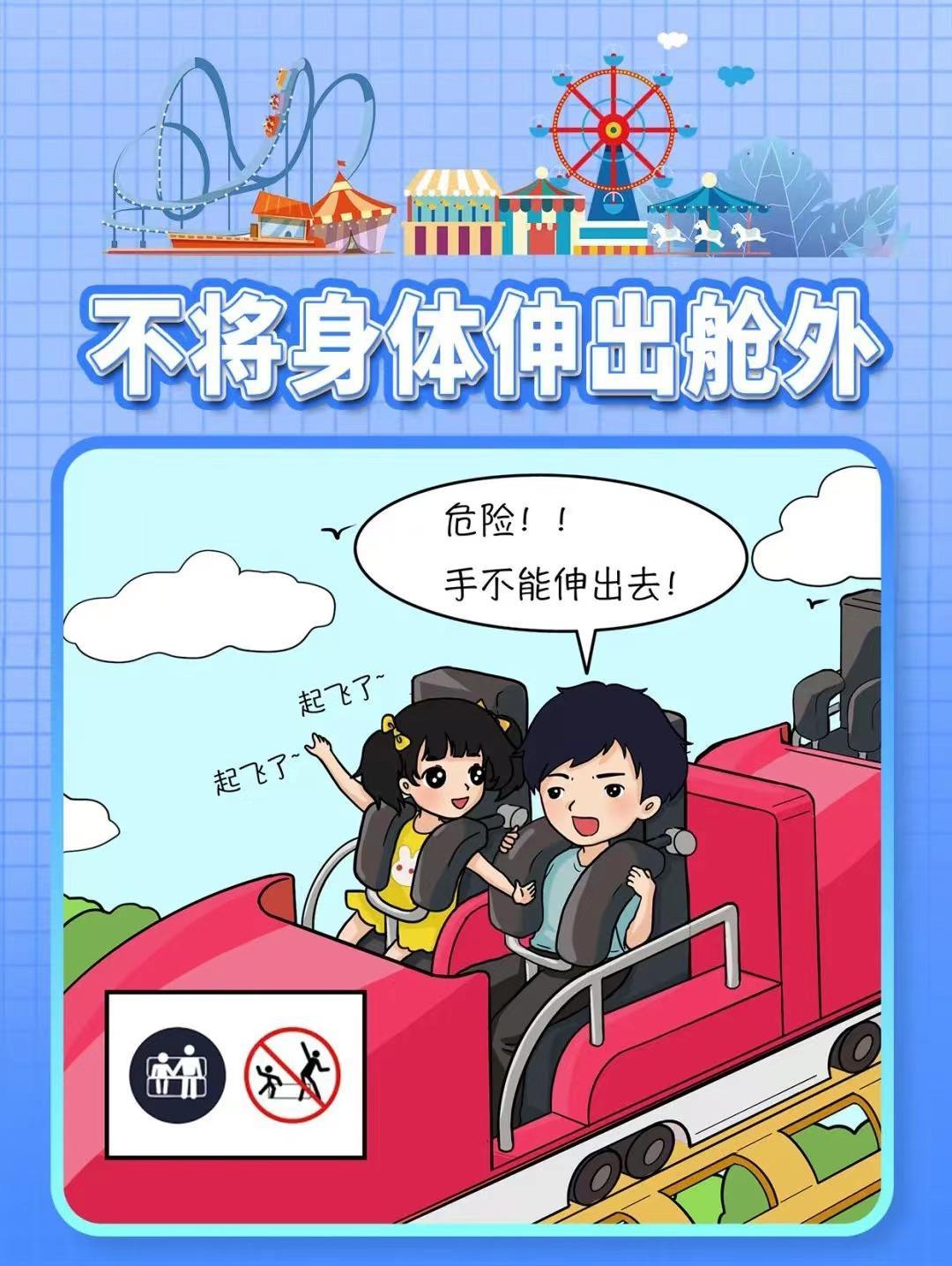 有些游客在游玩的时候,会携带一些便携设备自拍,做一些夸张的动作,这样其实并不安全。游乐设施启动后,应保持正确坐姿,握紧安全把手,身体及四肢不能随意伸出舱外,以免碰伤,刮伤,擦伤等意外发生。
