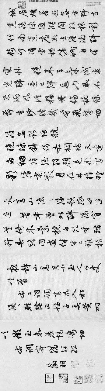 释文:城居烦暑避无方,野寺觅清凉。通湖阁外摇新竹,南熏度如在潇湘。醉倚何须雪槛,倦眠自有云床。晚来天气减炎光,归意已浑忘。山风不及湖风冷,移舟伤柳绿荷香。沙渚几群飞鹭,烟波无、断归航。晚凉斜倚赤阑桥,天远白烟消。酒醒顾见花间影,浮云散、月在林稍。野火青山隐隐,渔歌绿水迢迢。昔年曾此醉清宵。共倚木兰桡。白头重踏行春路,同游伴、半已难招。夜静山高月小,玉人何处吹箫。