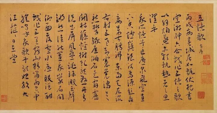 但是对于古代的普通百姓而言,无论是画舫还是农家乐,距离他们的生活都太过遥远。三十五岁的夏天,生活窘迫的明代书法家王宠更是因为“病暑”出不了门,整个城市就像个蒸锅一样煎熬着他的身心。为了排解热燥烦忧,他重新书写了自己的《五忆歌》,借写游记回忆曾经游玩过的名山大川,以濯思消暑。
