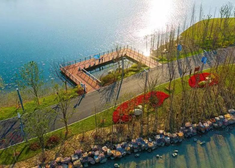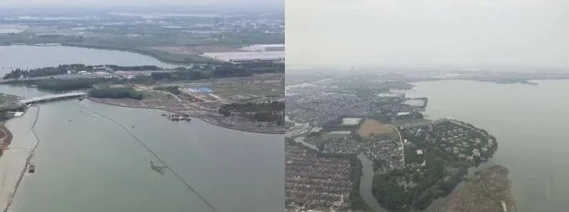 如今,湖面上的网障已经被清扫一空,元荡公路桥的东侧,建有盘旋弯曲的景观步行桥,桥长586米,整体设计以“同心结”为理念,体现青吴两地同心共治的发展愿景。