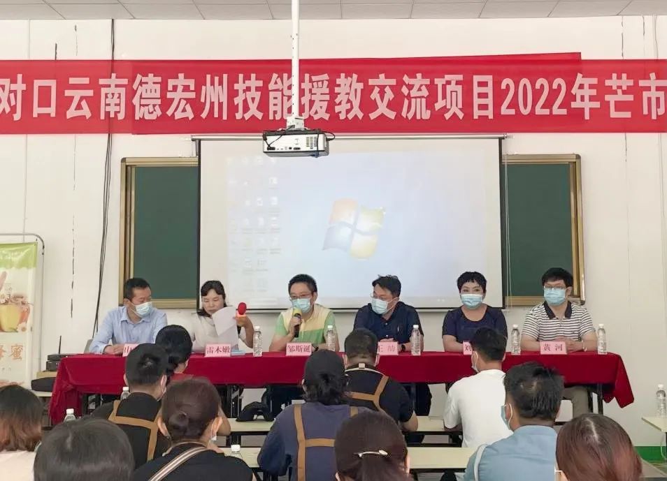 根据《青浦区对口云南省德宏州、青海省果洛州就业创业扶持帮困三年行动计划》(青人社[2021]17号)文件精神,为扎实推进青浦区对口帮扶德宏州技能援教工作深入、有效、持续开展,8月9日,青浦区2022年第一批技能援教专家团8人到达德宏州开展技能援教和教学研讨交流等工作,专家团得到了州委副秘书长张吉、芒市副市长王劼、梁河县副县长刘磊等青浦援滇干部的大力支持。