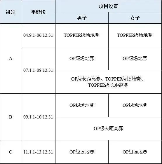 帆板小项设置表