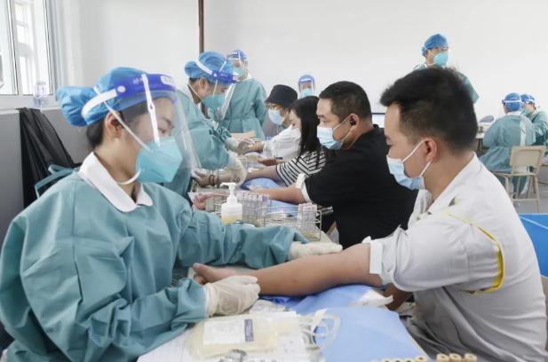 上午8点,献血志愿者严格落实疫情防控要求,分批次抵达采血点,有序测量体温,出示行程码和24小时内核酸证明,填写流行病学史及健康状况征询表。在工作人员的引导下,大家按照献血流程填写登记表、甄别身份、测量体重血压、抽血化验,经血液检验合格后开始采血。