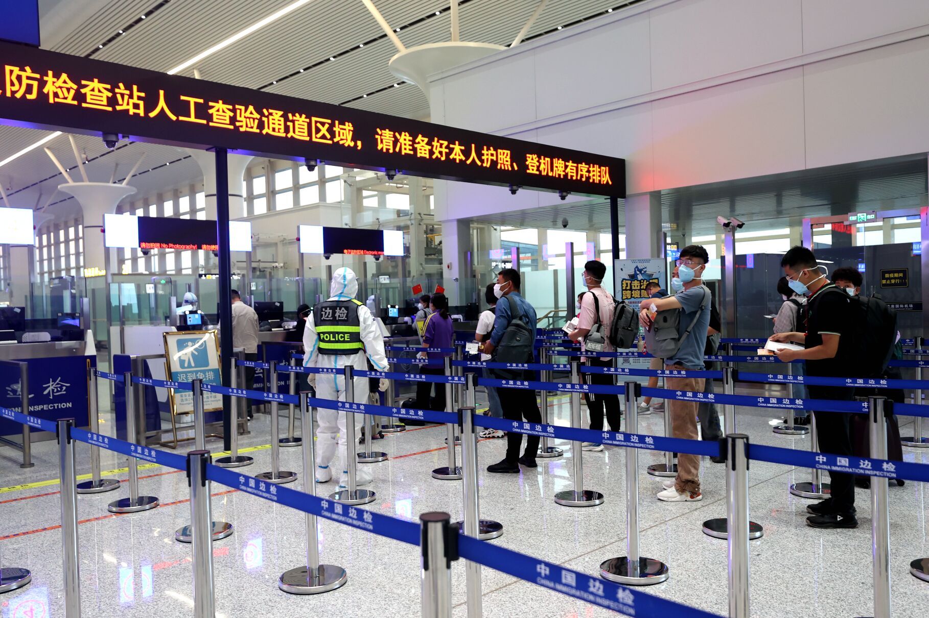 山东出入境边防检查总站济南边检站严格落实常态化疫情防控工作要求,按照“一航班一方案”原则,开足旅检验证通道,以最短的时间、最高效的服务为搭乘首航班机的67名旅客办妥出境通关手续。