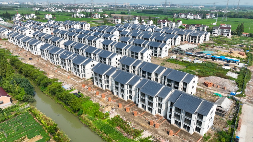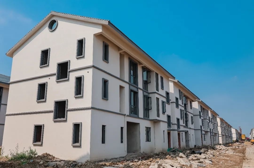 在施工现场,105幢白墙黛瓦的小洋房已初具雏形,古色古香的中式风格,保留了农村的原有肌理,也还原了江南水乡的面貌。“项目于2021年3月中旬开工,目前105幢房屋的主体结构已经建设完成。正在对剩余的14幢房屋进行外立面的粉刷,房屋预计10月完成。”代建项目负责人黄立乾介绍了项目进度情况。