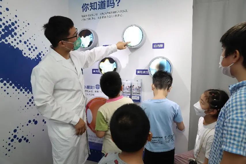 近视防控是一个关系儿童青少年身心健康发展的重大问题,受疫情影响,儿童青少年线上学习时间加长,户外活动减少,近视防控面临挑战。8月18日,瑞金科学生活馆蔡司近视防控科普展系列活动之一——为青春护航,关爱未成年人眼健康主题公益活动举办,通过科普展参观和眼科医生职业扮演,为来自黄浦未保“暑期陪伴营”的10余位8-15岁青少年及家长带来一场生动的眼健康科普体验。