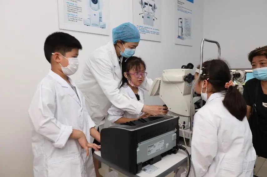 随后,孩子们在普瑞眼科医院参与了眼科小医生体验活动。通过“儿童医护角色扮演”,提供沉浸式的学习场景,激发孩子们在真实的世界中主动学习,并在专业医护团队的带领下使用先进的医疗检测设备,从小懂得爱眼护眼的重要性。