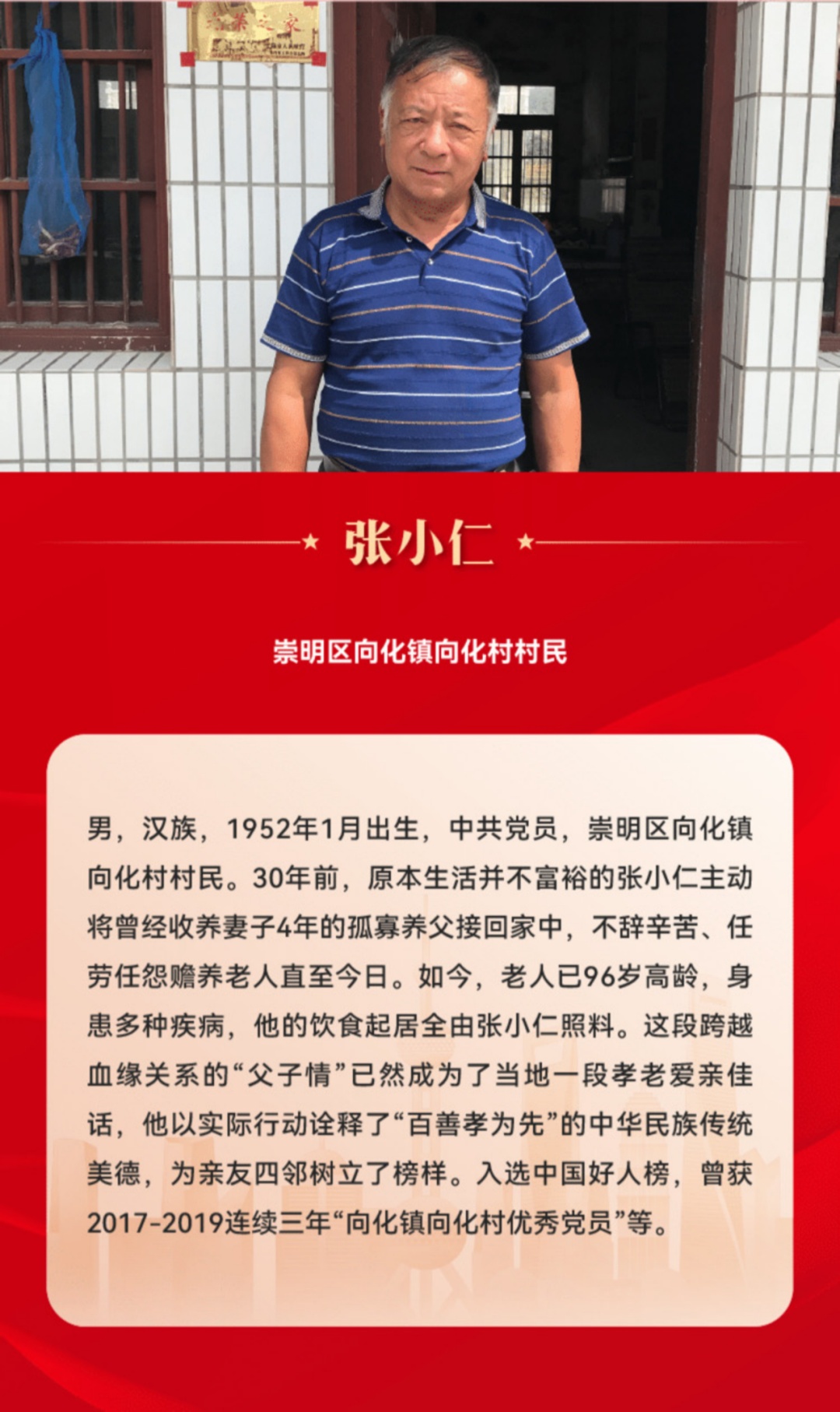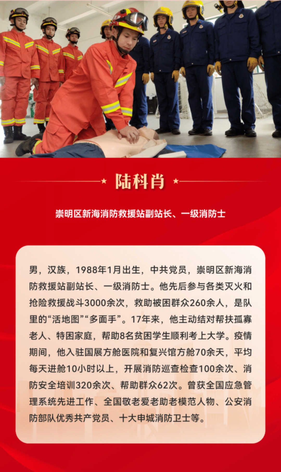 “光荣与力量——2022感动上海年度人物推选活动”今日启动啦!经各基层单位踊跃推选,46个先进典型成为候选人(团队),其中有两位来自崇明区的候选人。