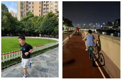 每到周末的夜晚,爸爸妈妈还会陪他沿着苏州河骑行。“一路上凉风在耳边呼呼地叫,路灯透过树杈忽明忽暗,运气好的话还能听到蝉鸣呢!”罗浚哲说。“晨跑的时候,太阳在我身后;夜骑的时候,星空在我身后,这种感觉别提有多美妙了!”