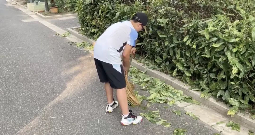六(4)的宋沁荣主动请缨参加了社区组织“清理小区垃圾,美化社区环境”志愿活动。经过一夜的大雨磅礴,社区内绿叶散落一地,宋沁荣被指派了一小片区域进行打扫,经过半个小时的劳作才清理完这小片的落叶。这次的清扫工作也让宋沁荣深深感受到了环卫阿姨工作的辛苦。“这时我才了解到平时环卫阿姨们为了居民们的居住环境做出的贡献。”宋沁荣说。