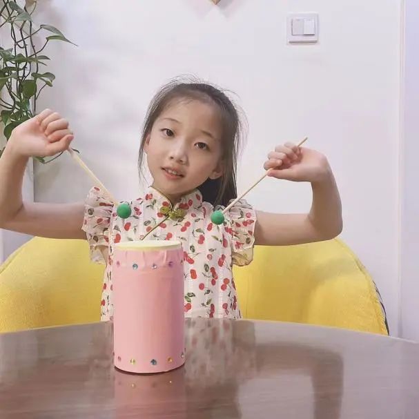 矿泉水瓶装入三分之一的大米制成沙锤,废旧罐子套上气球变身非洲鼓,罐头和筷子组成的打击乐器……二年级小朋友利用手边的废旧环保物品自制小乐器。孩子们发挥自己的想象力,变废为宝,化身小小演奏家。