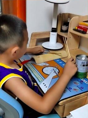二(4)班的罗浚哲这个暑假化身成为了一名“运动小达人”。每天早上,当阳光顺着窗户爬进被窝的时候,他就起床穿好运动服独自出门跑步了。最开始的几天,他只能围绕着小区草坪跑5圈,到现在他已经能每天跑20圈。他还想了一个办法,戴上电话手表边听故事边跑步,一下子就觉得跑步充满了乐趣。