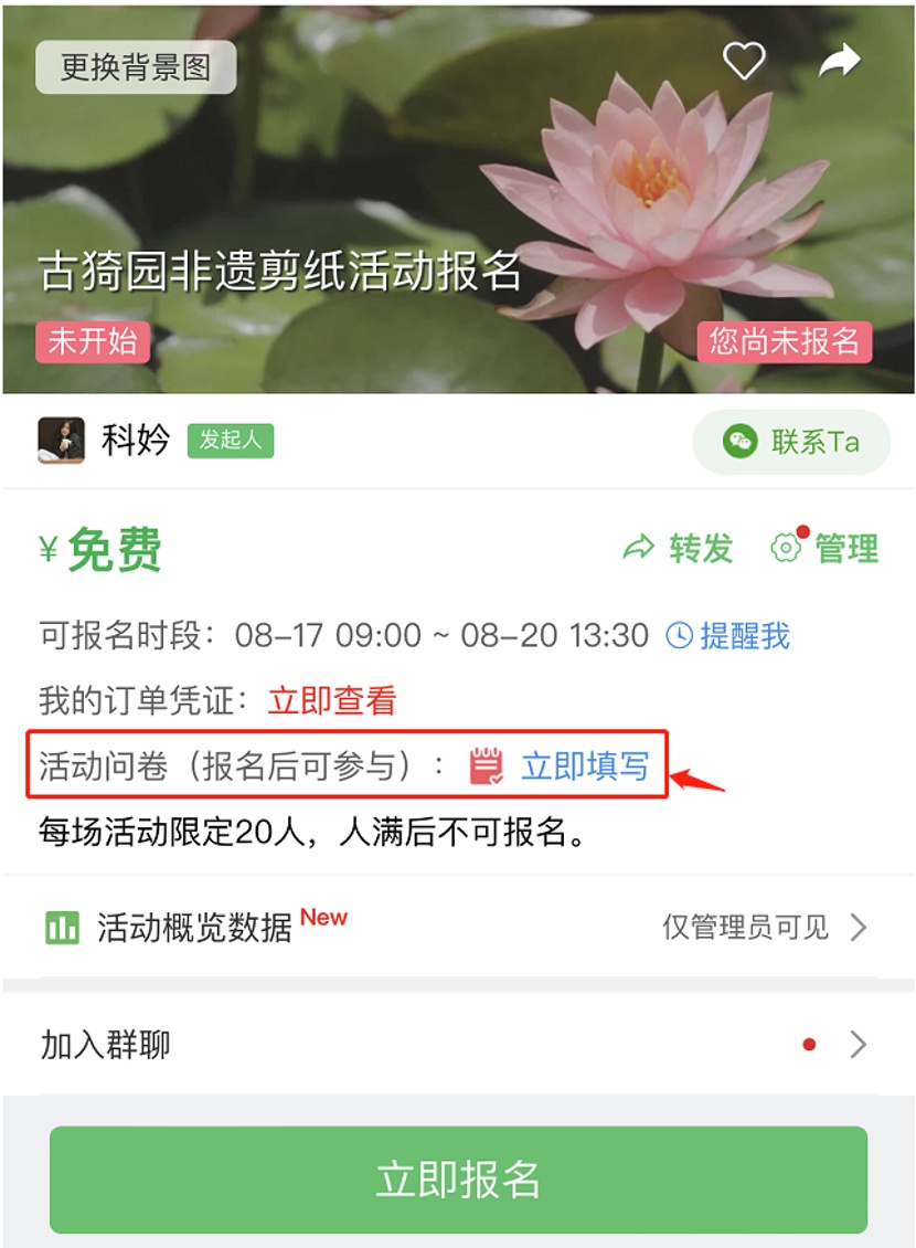 点击文末二维码扫码进行活动报名,快来古猗园领取专属荷花及莲蓬吧~