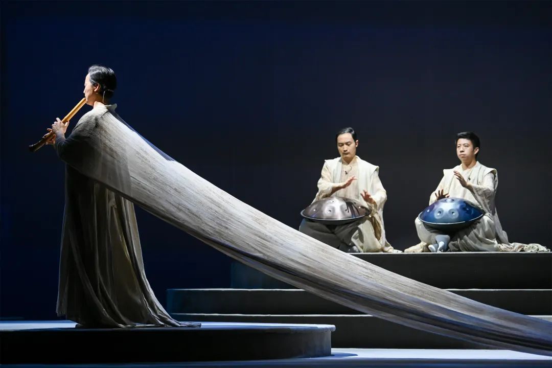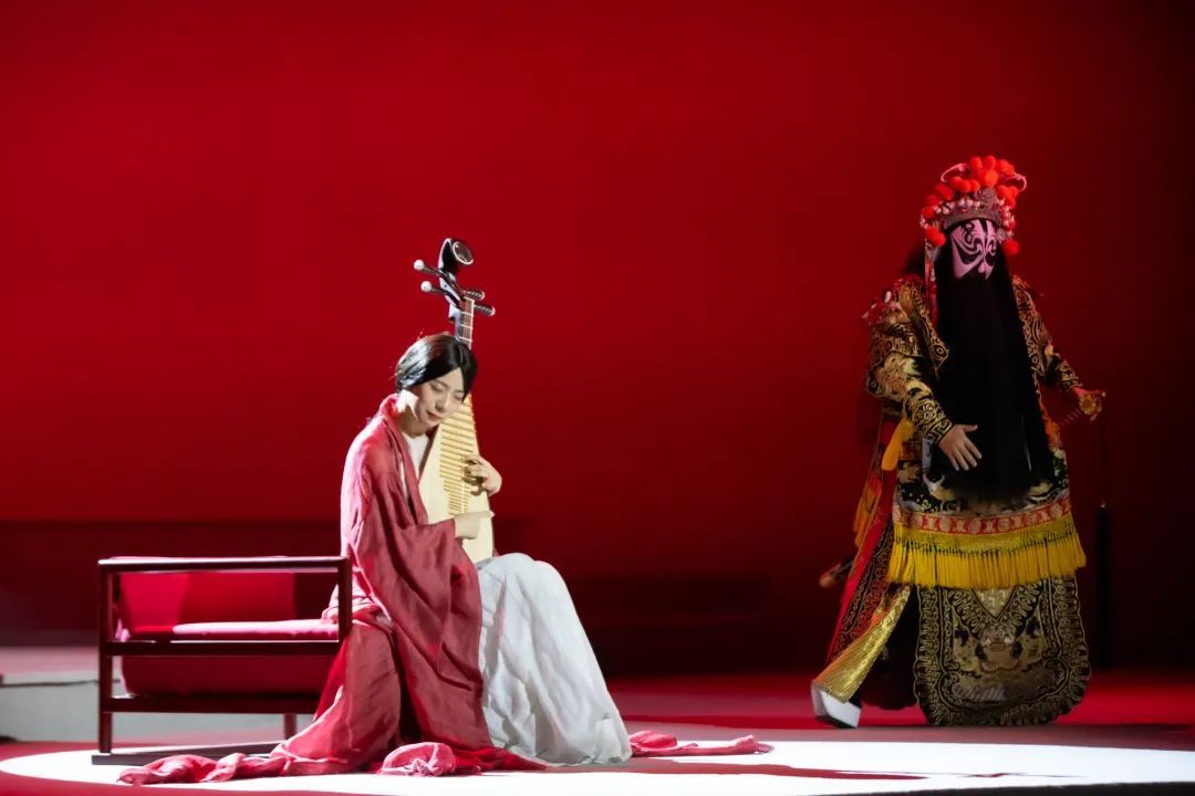 二轮驻演中,一些新的组合首次亮相,赋予作品新的生命力。去年,《酒歌》演绎了霸王项羽的英雄豪情,而今年,乐团新推出的《虞兮》转化了人物视角,琵琶演奏家朱天津化身虞姬,联袂的京剧也相应由青衣改为花脸,刚柔并济间,讲述红颜长歌、至情不渝的千古绝恋。