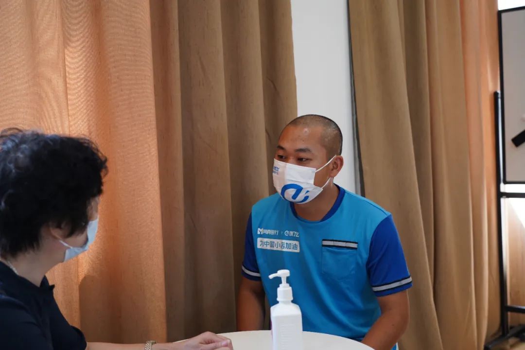 让汤程感到温暖的不只是站点的启用。送完上午的派单,吃过午饭后,汤程来到嘉定镇街道党群服务中心,“党建顾问”吴阿姨早已在这里等候。在上午的活动中,来自秋霞社区的老党员吴静与汤程结对,为他提供党史学习教育方面的帮助和指导。“疫情期间,外卖骑手为我们社区居民做出了很大贡献,特别感谢他们,这次也是给了我们一个机会,让他们感受到组织的关心和关爱。”吴静说。