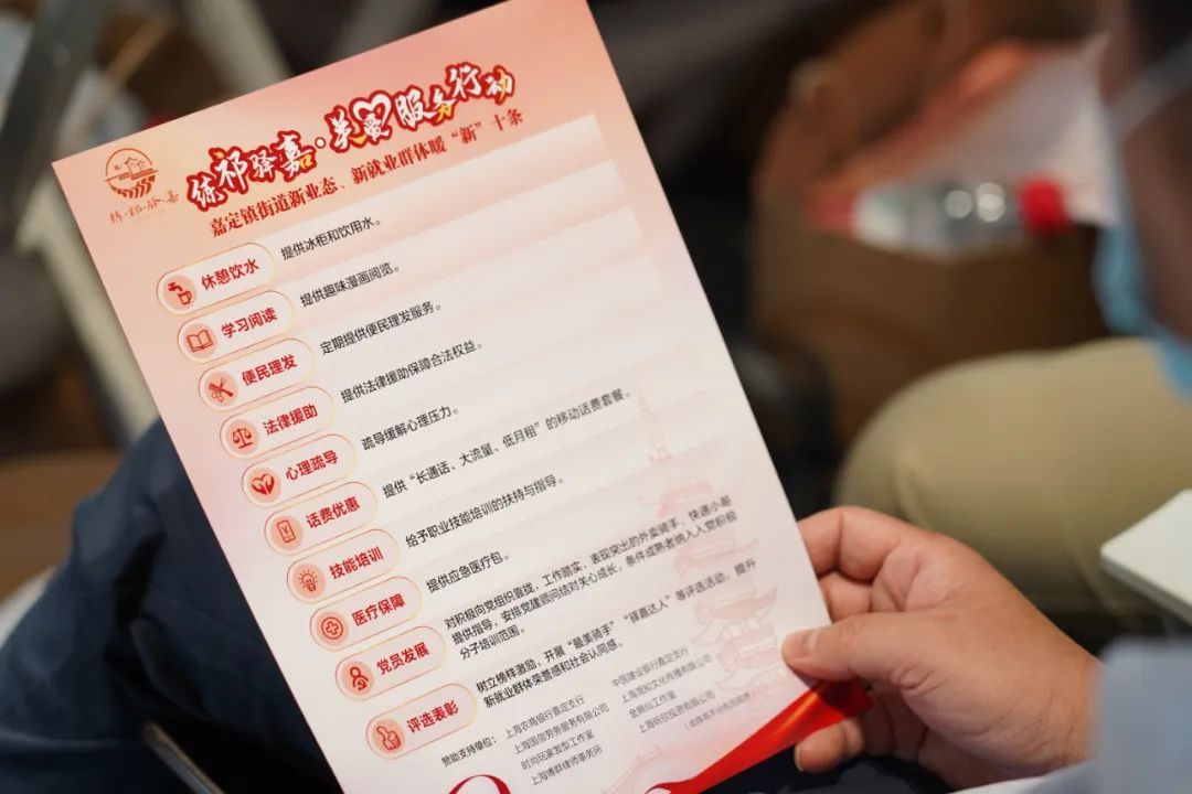 今天,嘉定镇街道还发布了一系列“练祁驿嘉”关爱服务行动,包括为外卖骑手、快递小哥等免费提供冰柜和饮用水、便民理发、法律援助保障等服务。不仅如此,街道还为新就业群体及其子女定制了一系列“练祁驿嘉”服务站点活动菜单,精准服务行业人群,提升新业态就业群体的归属感和幸福感。