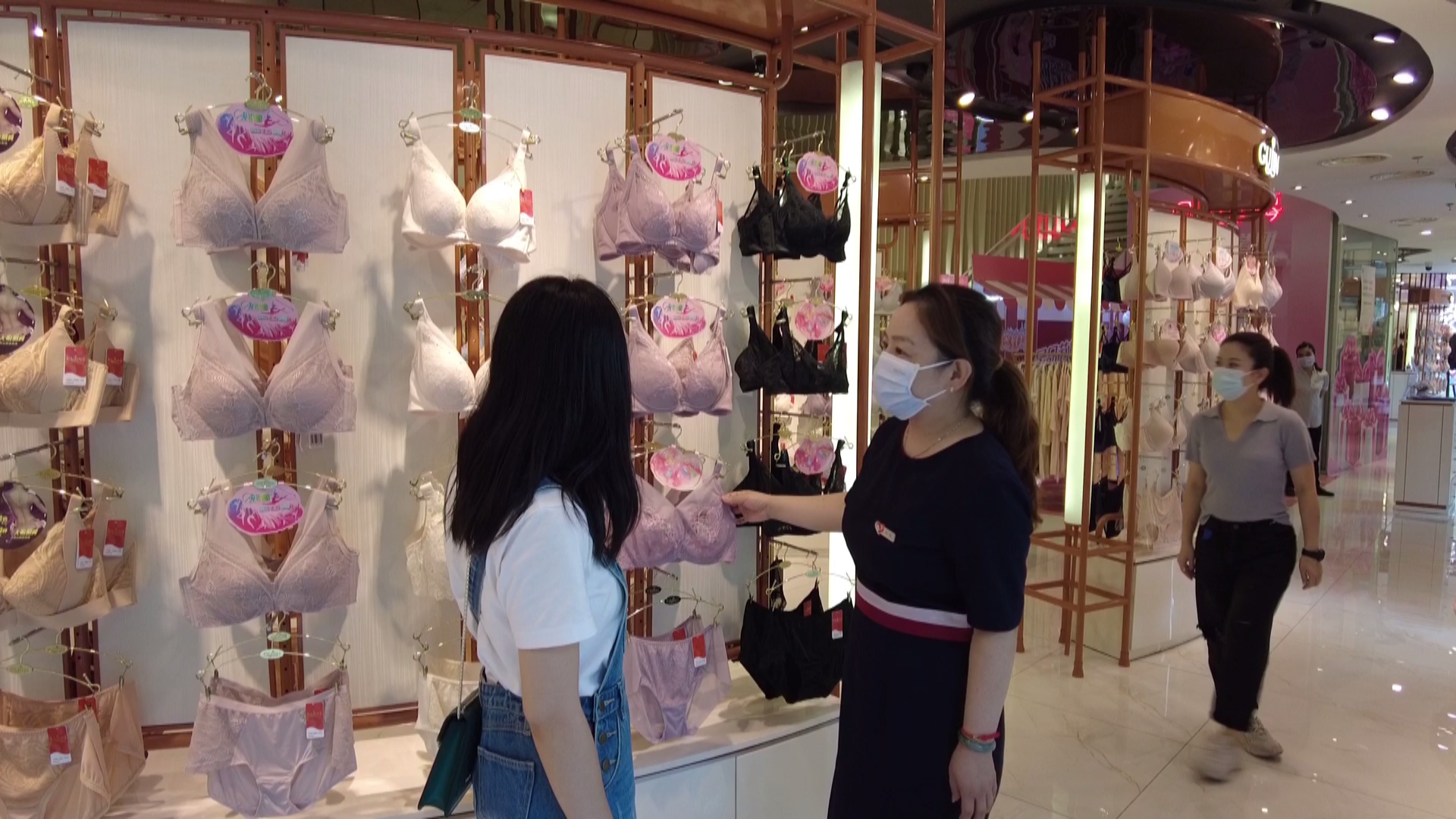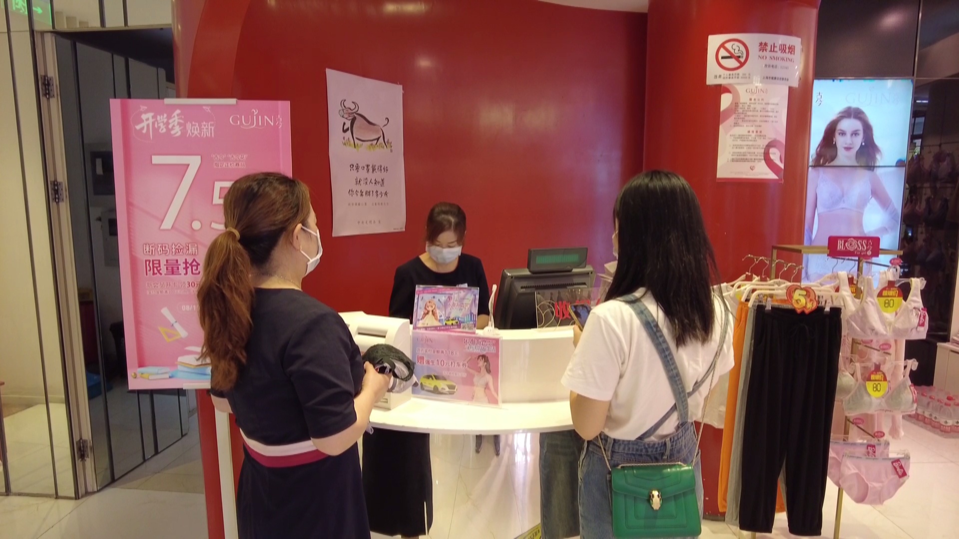 古今内衣店长告诉记者,这两天乘着天气转凉前来购买内衣的消费者不少。马上到开学季了,所以针对这部分人群也推出了专门的活动。店经理告诉记者:“开学季换新活动,是全场新款7.5折,更有叠加现金券可以使用,断码捡漏也很实惠。”