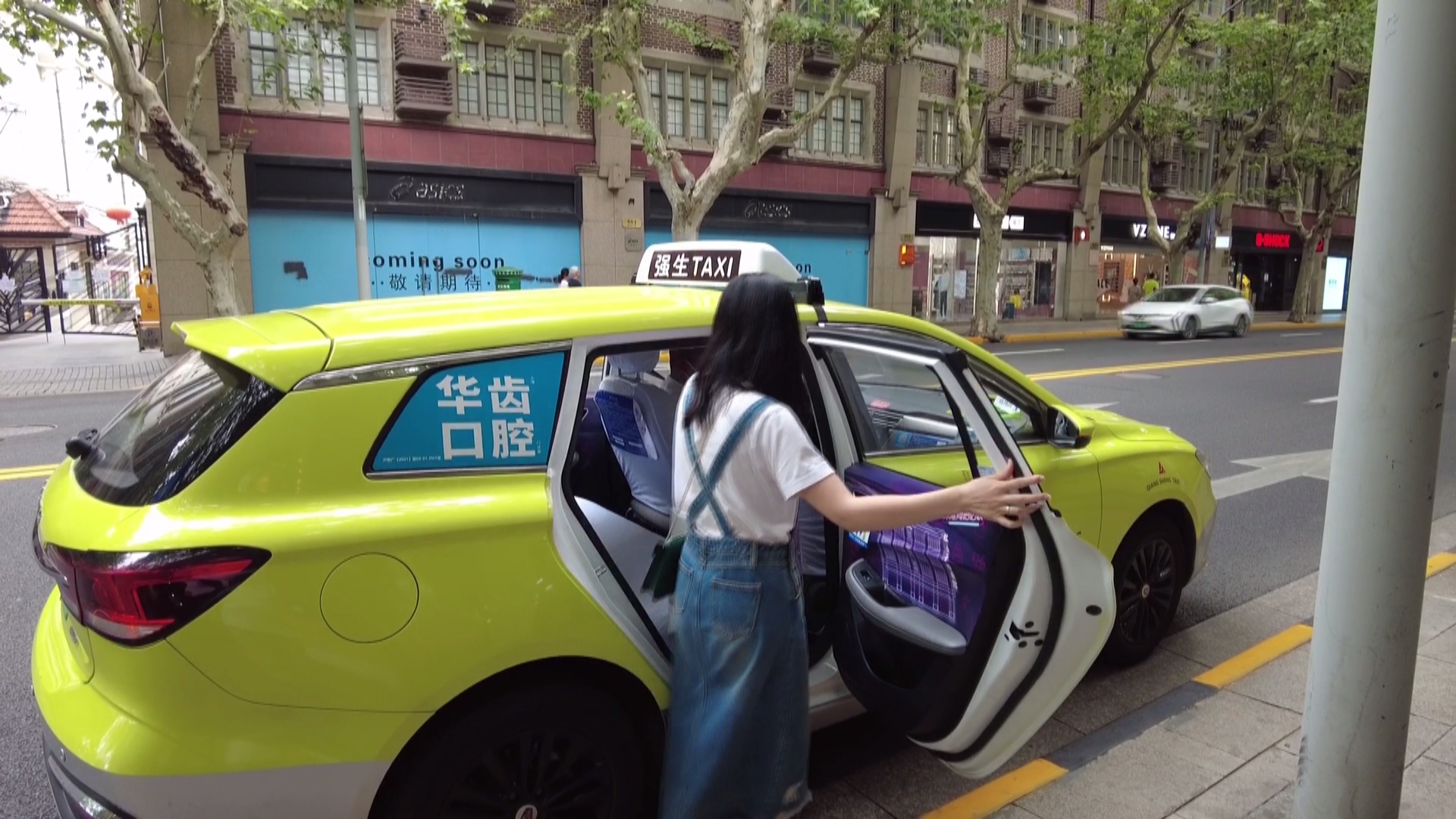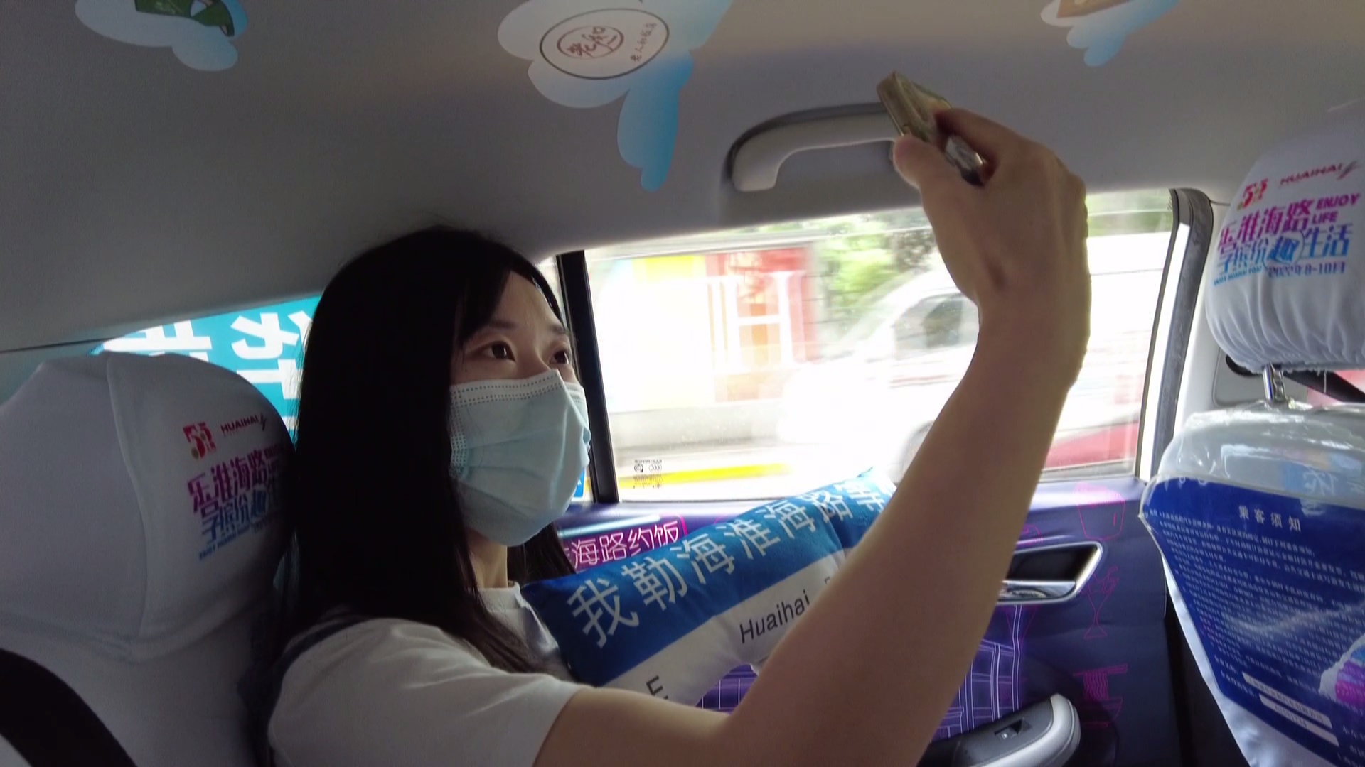 记者征得徐小姐同意后一起拦了一辆强生出租上车采访,只见出租车后座内饰印上了淮海路沿线的标志性建筑,怀旧与时尚感十足。通过强生出租车内互动屏幕,不仅可了解活动概况,还可自主扫码领取商户优惠券,直接在线上购买商品或至淮海路线下消费立享优惠。徐小姐表示,这个车厢感觉眼前一亮,走进来到处都是淮海路的布置,让人有一种沉浸式的体验。车里的屏幕还可以领优惠券,非常方便,一边坐车还可以看看屏幕上的东西。