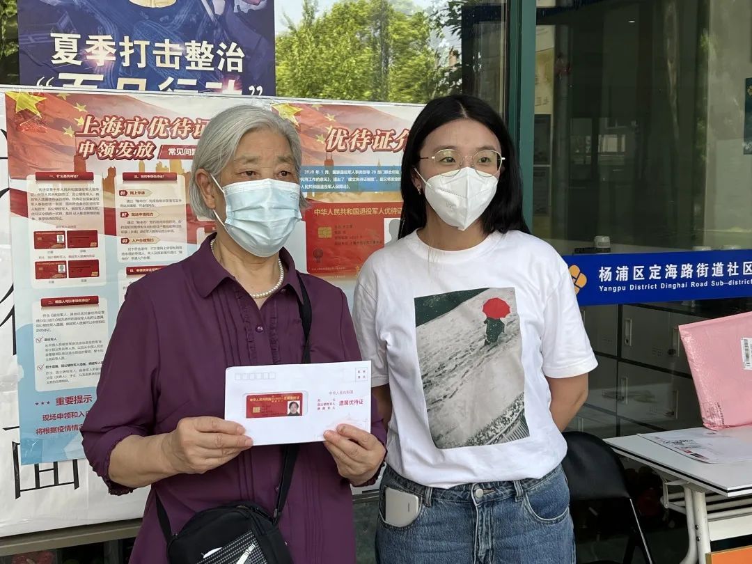 “我的父亲是烈士,作为烈士子女,感谢国家给予我的帮助。”定海路街道第一位领到优待证的居民,83岁的马阿婆激动地说道。
