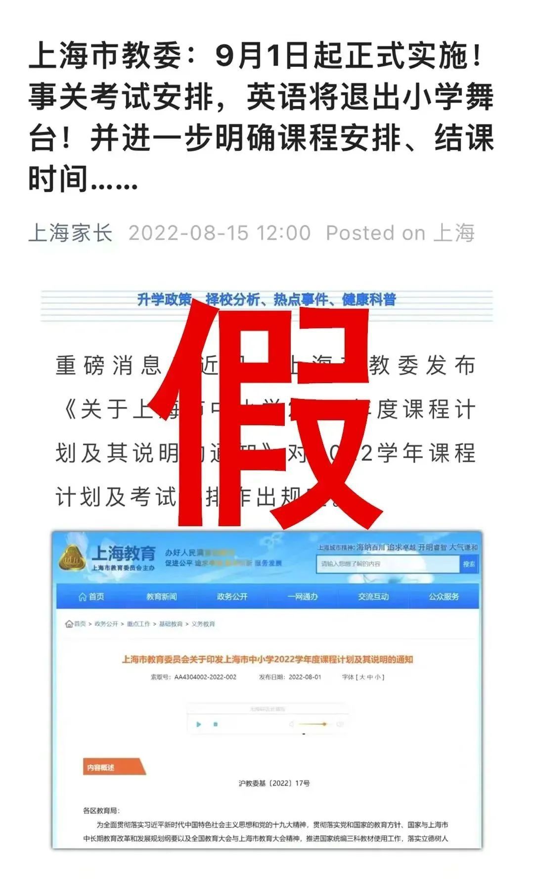 那么,这篇文章究竟写了什么呢?其实,它只是复制粘贴了一份上海市教委8月1日发布的文件。