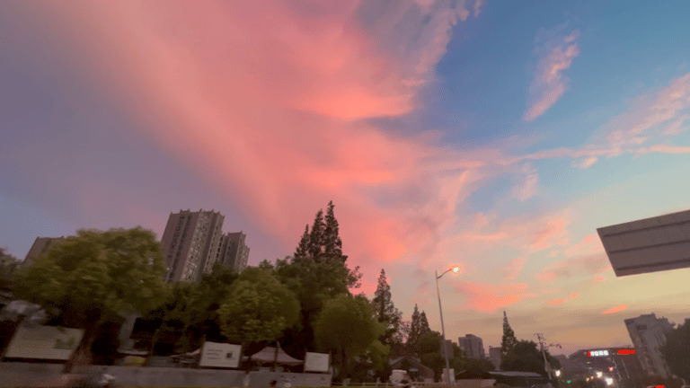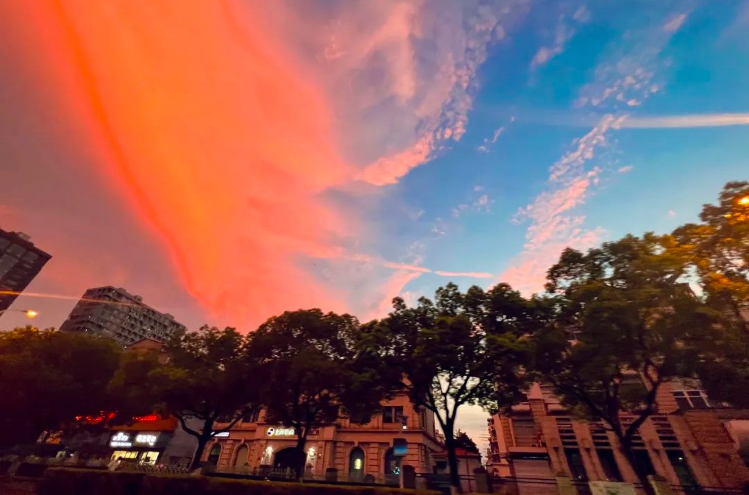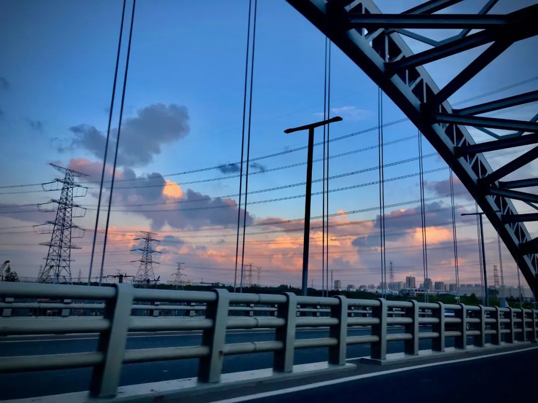 残阳倒映在栏杆上,过往的行人融入于暮色,橘粉色的晚霞映着蓝色的天空,便是无尽的梦幻与温柔绵延。日落西沉,余霞成绮;华灯初上,彩霞辉映。想扯下一束光,制成书签,好好珍藏。