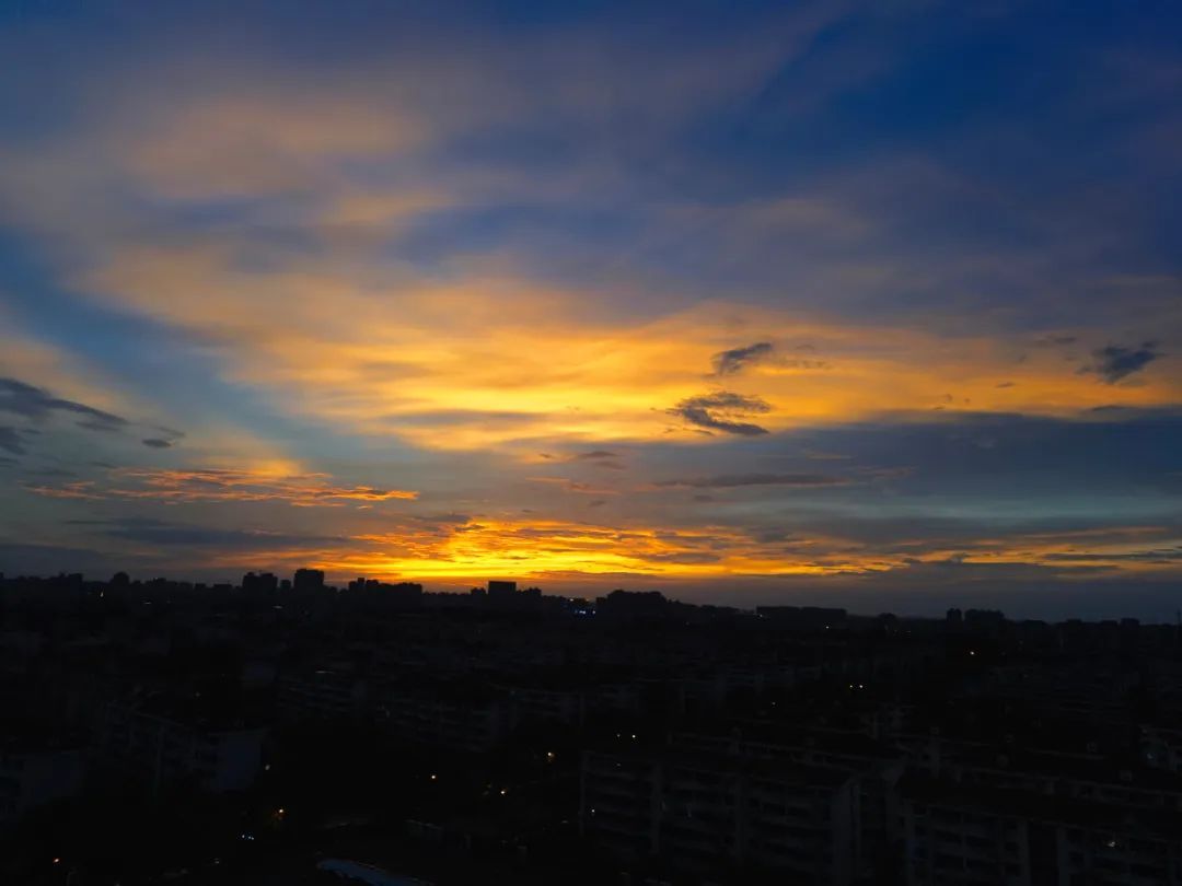 爬上楼顶,总能一瞥夕阳落日的光辉。他们时而艳丽夺目、时而粉色诱人、时而五彩斑斓、时而深色低沉,好似街道的万家灯火,一幅“乐居新成 幸福花园”的美好画卷在眼前展开。