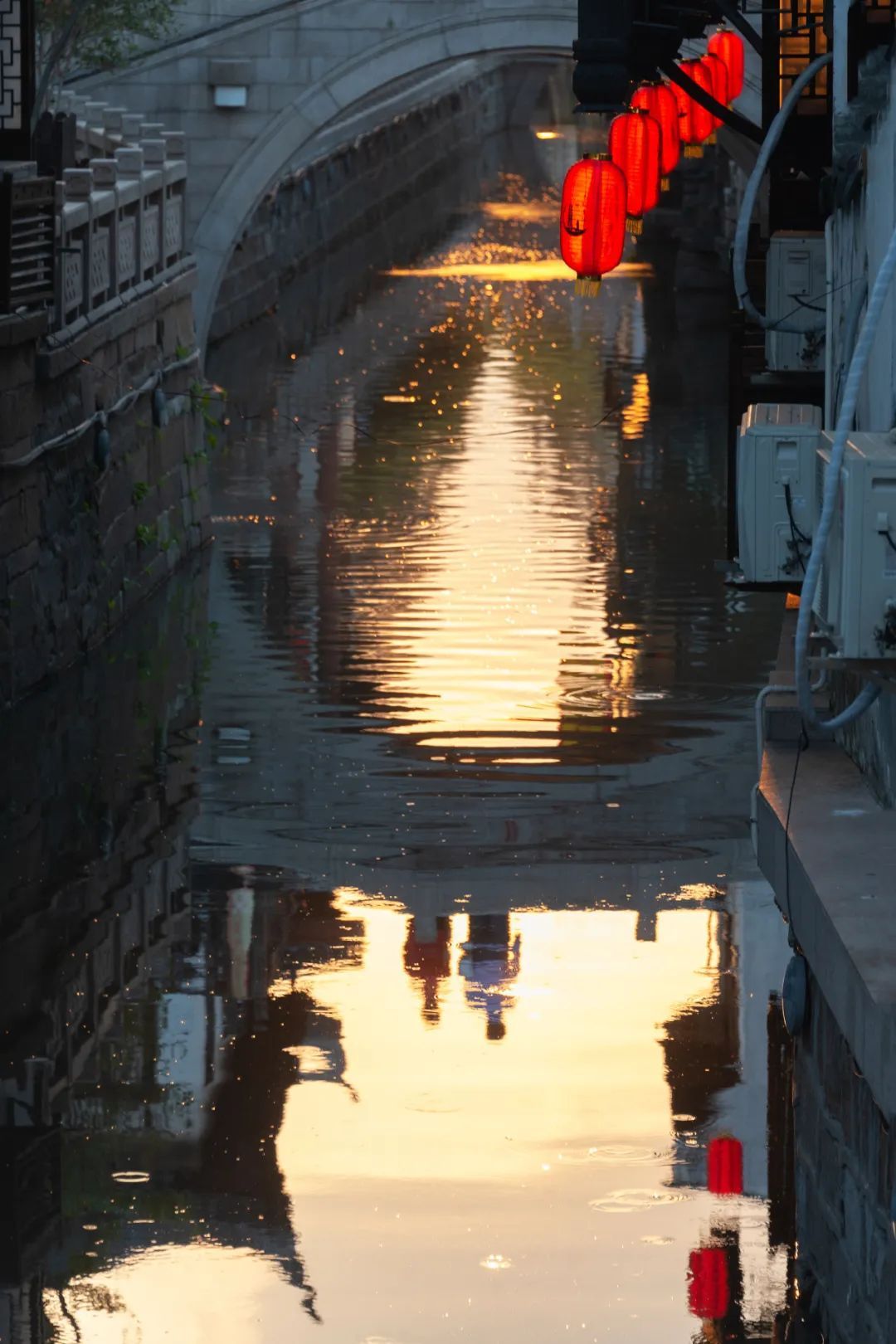 在钢筋水泥筑成的城市里待久了,便格外向往古色古香的老街旧巷。太阳落山那一刻,在南翔老街的拱形小桥驻足,看小湖泛起黄色的光芒,看桥上行人人来人往,殊不知自己和小桥也在湖面的倒映中,成了别人的风景。