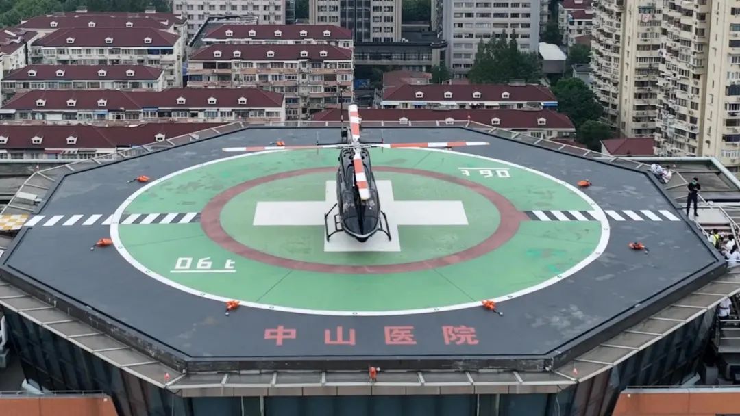 8月18日上午11:53分,一架直升机带着捐献器官在复旦大学附属中山医院肝肿瘤和心血管病综合楼楼顶专用停机坪降落,送到的器官通过“绿色通道”畅通无阻地被送往手术室。此次航空转运任务的成功标志着中山医院应急医疗救治能力的再一次提升。