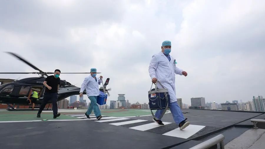 捐献器官的运输过程可谓争分夺秒,是一场生命与时间的竞速。直升机从杭州萧山机场起飞后,历时40分钟抵达中山医院。