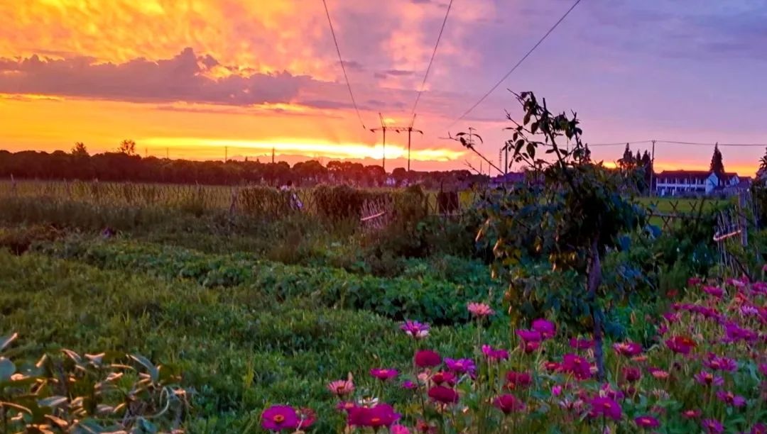 晚霞中的联三村静谧、唯美且悠然,一树一叶、一花一草,无一不披上幻彩外衣。漫步于耕读园内,耳畔仿佛响起孩童们的朗朗诵读声。坐于凉亭间仰头望向天空,看夕阳、晚霞和云层起舞,美了美了,爱了爱了!