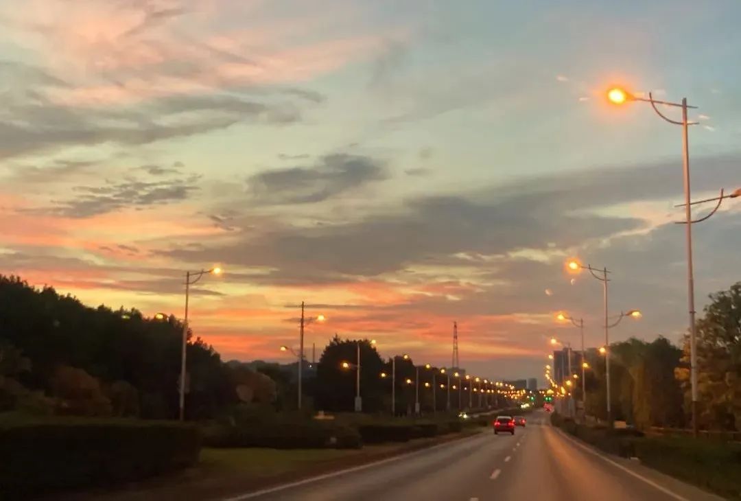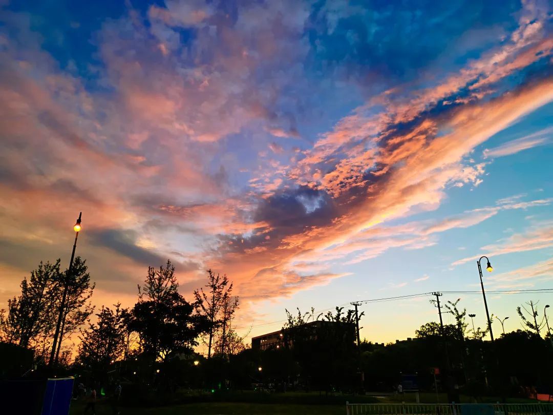 爱世间温暖事物,沿途为晚霞驻足。漫步北水湾周边,途经环城河绿带、紫云廊等处。不由感慨,夕阳像才华横溢的画家,把傍晚描绘得如此多姿多彩。