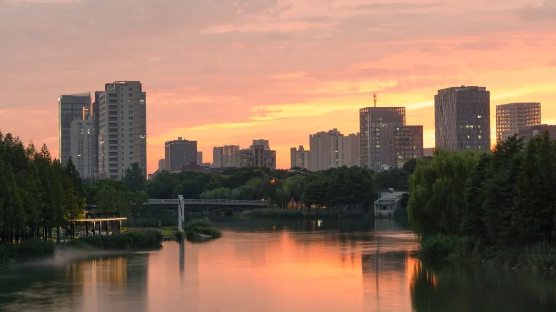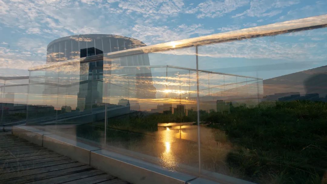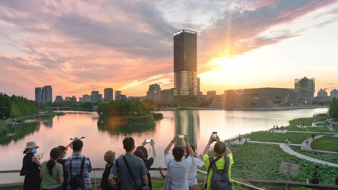 藏匿在云朵后的那轮圆日,从嘉定凯悦和众多的楼宇间缓缓滑落,把天空映得透亮,直至耳畔响起同伴对晚霞的赞叹,才将思绪拉回那条远香湖边邻水的长椅。