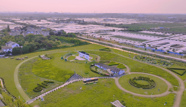 没有了白天的刺眼与夺目,在夕阳和晚霞的映照下,绿意盎然的草坪与色彩绚丽的晚霞交相辉映,素有“上海外婆家”美誉的毛桥村显得格外静谧美好。