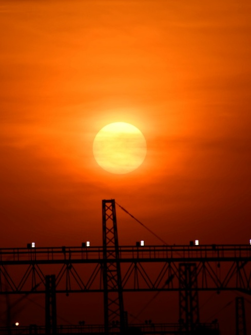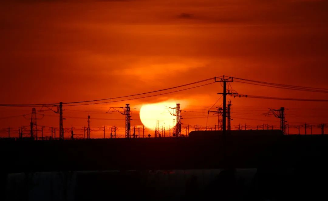 嘉洲公园的凉亭乘机与太阳玩起“捉迷藏”,憩息片刻的飞鸟与远处西沉的落日相映成趣,颇有“飞鸟相与还”的韵味。葱茏的绿荫、别致的凉亭设计,与远处的沿线铁轨,共同打造天然的构图场景。