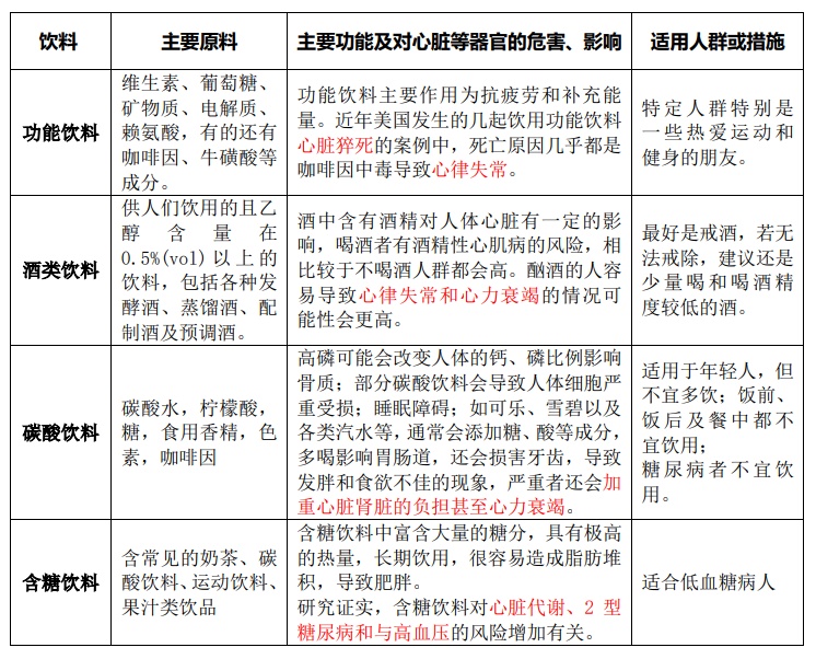 除了功能饮料,过量饮用含糖饮料和咖啡因饮料也对心脏不好。
