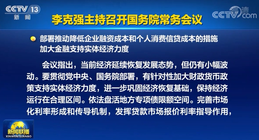 会议指出,当前经济延续恢复发展态势,但仍有小幅波动。要贯彻党中央、国务院部署,有针对性加大财政货币政策支持实体经济力度,进一步巩固经济恢复基础,保持经济运行在合理区间。依法盘活地方专项债限额空间。完善市场化利率形成和传导机制,发挥贷款市场报价利率指导作用,支持信贷有效需求回升,推动降低企业综合融资成本和个人消费信贷成本。
