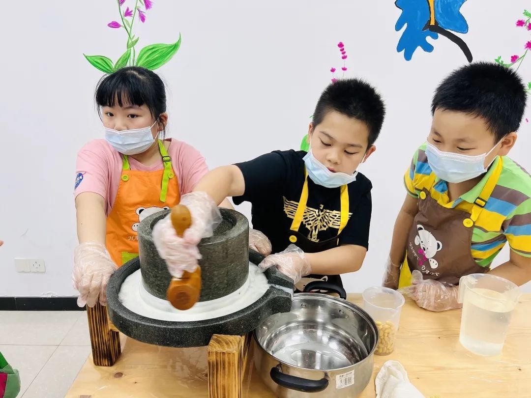 “手工磨豆腐、点豆花是一项‘古法’技艺,既能让孩子真实体验千年农耕文明的质朴风格,也能够锻炼他们的耐心。”现场的老师告诉记者,本次活动所属的“夏收”版块正是岳阳街道“汐拾书院”“沉浸四季”系列的收官活动,带领孩子们以这一特别的“下厨”实践告别暑假,迎接新学期的到来。