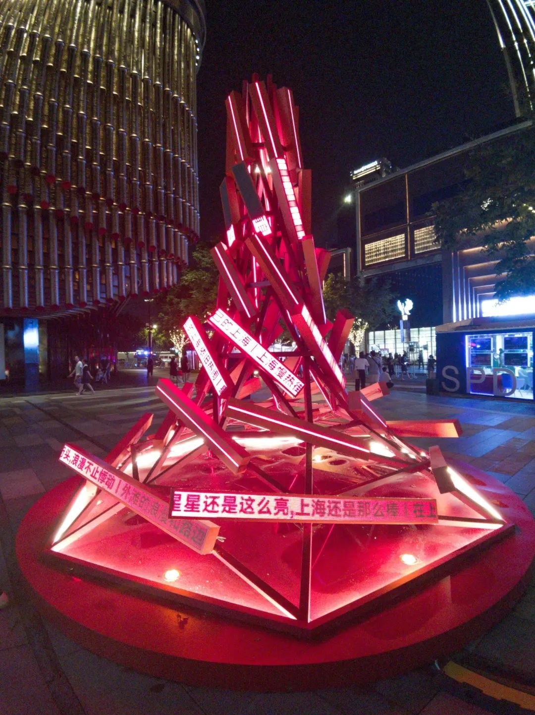 艺术装置“夜火”,通过夜与火的概念碰撞,表达点亮火光、温暖城市的信心。