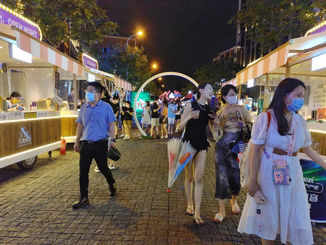 8月20日,上海最美夜集市——“外滩枫径”在BFC外滩金融中心重启,为期两天的上海夜生活节开幕特别活动——“OPEN NIGHT夜生活会客厅”当晚也在这里登场,围绕夜购、夜食、夜动、夜读等7个主题,40个体现上海24小时城市多元魅力和夜间活力的代表性品牌,将在枫泾路推出限时两天的快闪活动,演绎夜上海的年轻力与烟火气。